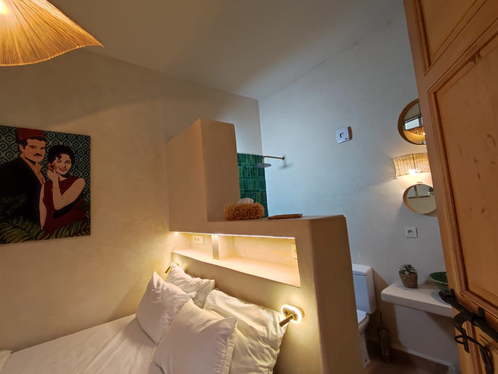 Dar Aji est un bijou conçu par notre architecte Fabien Asunción Burguillos. Maison d’habitation de la médina, elle a été réhabilitée afin d’accueillir ses visiteurs dans une ambiance propice à la détente. Son aménagement comme sa décoration ont été pensés pour mettre en valeur lumière techniques et matériaux traditionnels de construction, éléments d’origine et modernité.