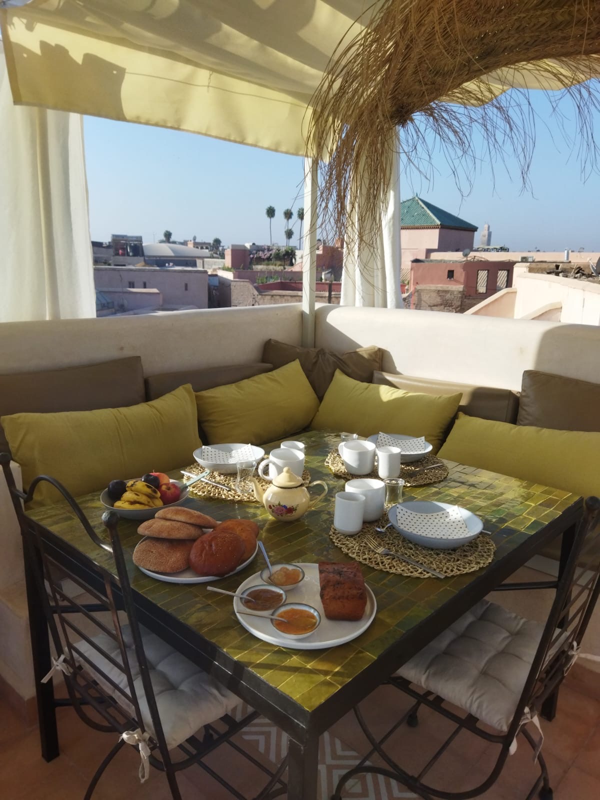 Son rooftop offre une vue imprenable à 360° sur les toits de la Medersa Ben Youssef et de la médina ainsi que sur la chaine du Haut-Atlas. Un panorama exceptionnel, notamment en hiver avec ses cimes enneigées.
